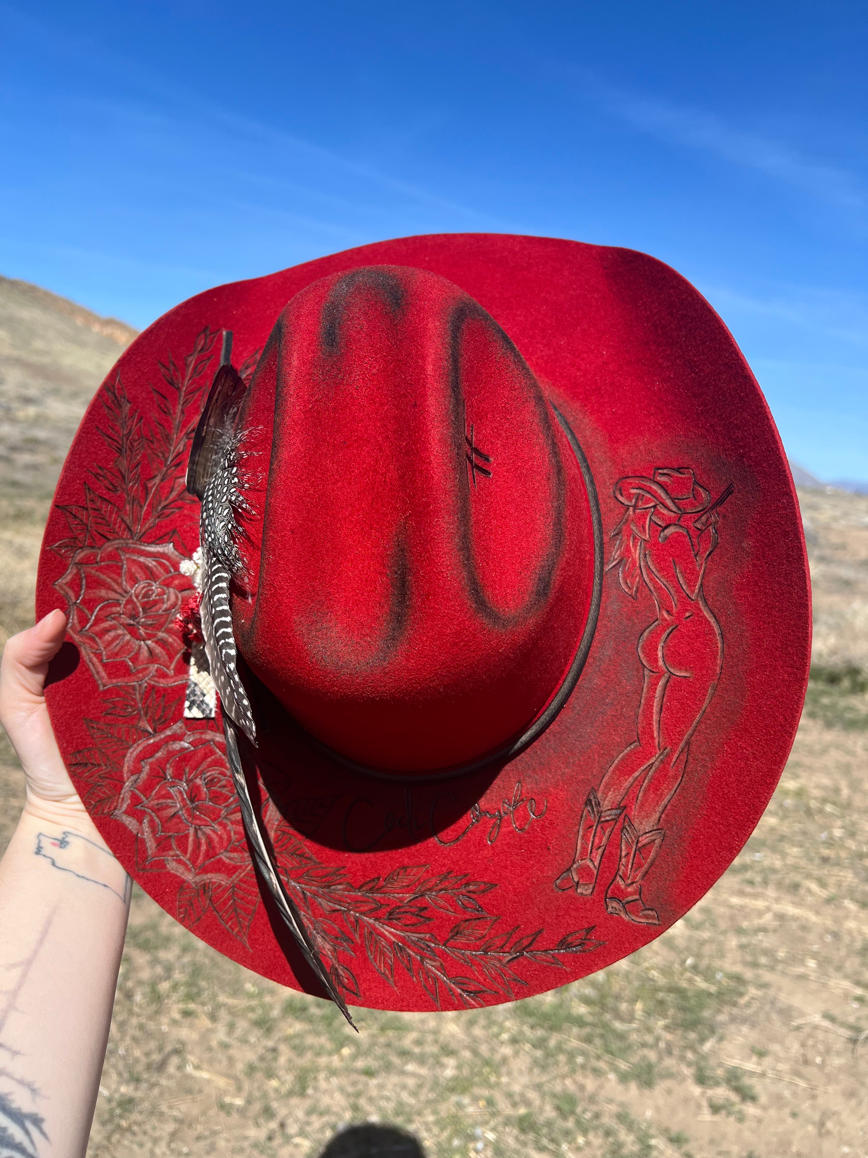 ORIGINAL ARTWORK OF PINUP COWGIRL IS FROM CODI COYOTE LEATHER GOODS