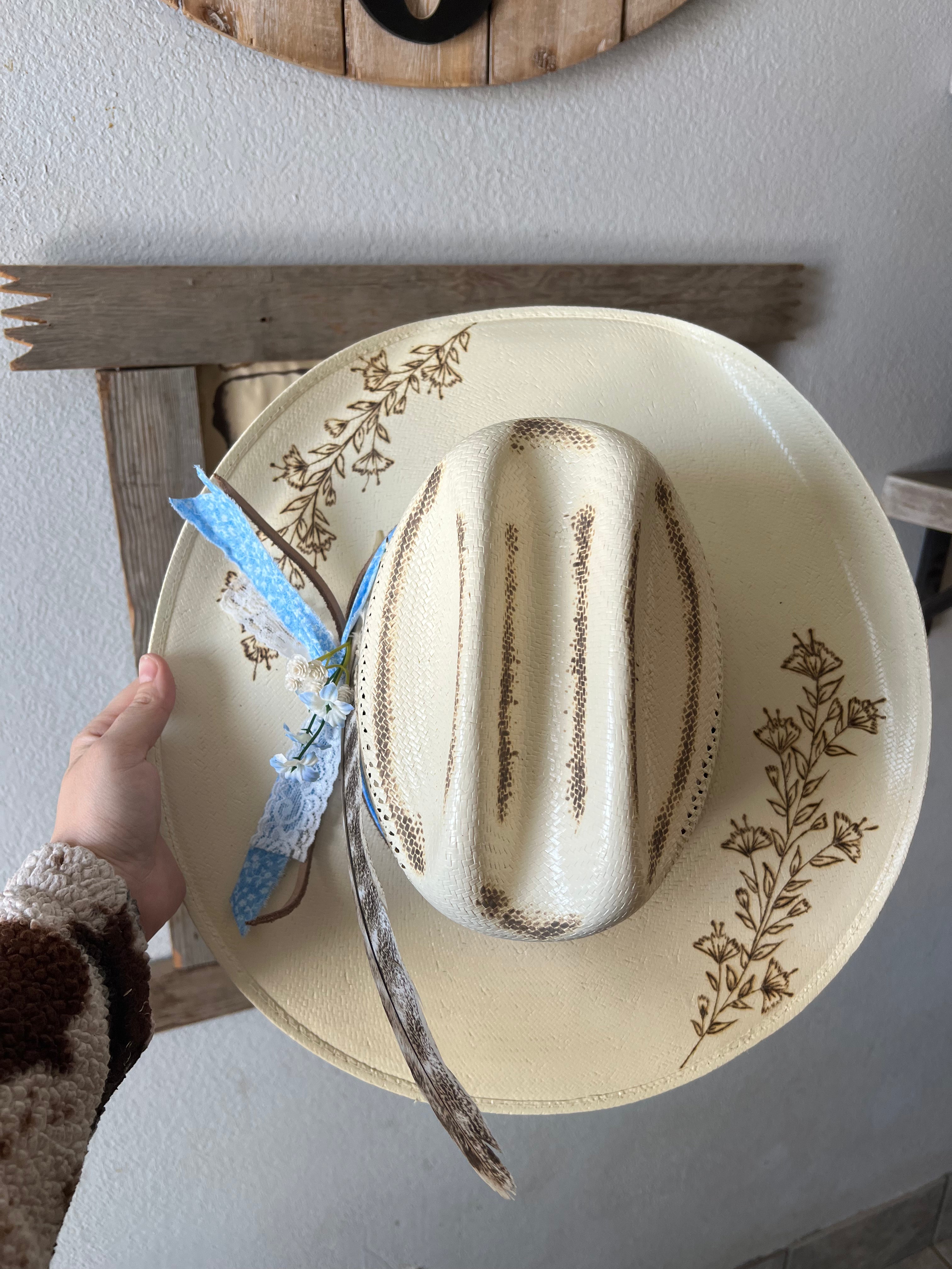 Flowers, Feathers, AND headband are all removable and not secured to the hat. It is the customer’s responsibility to secure these to the hat upon arrival if they wish to do so!